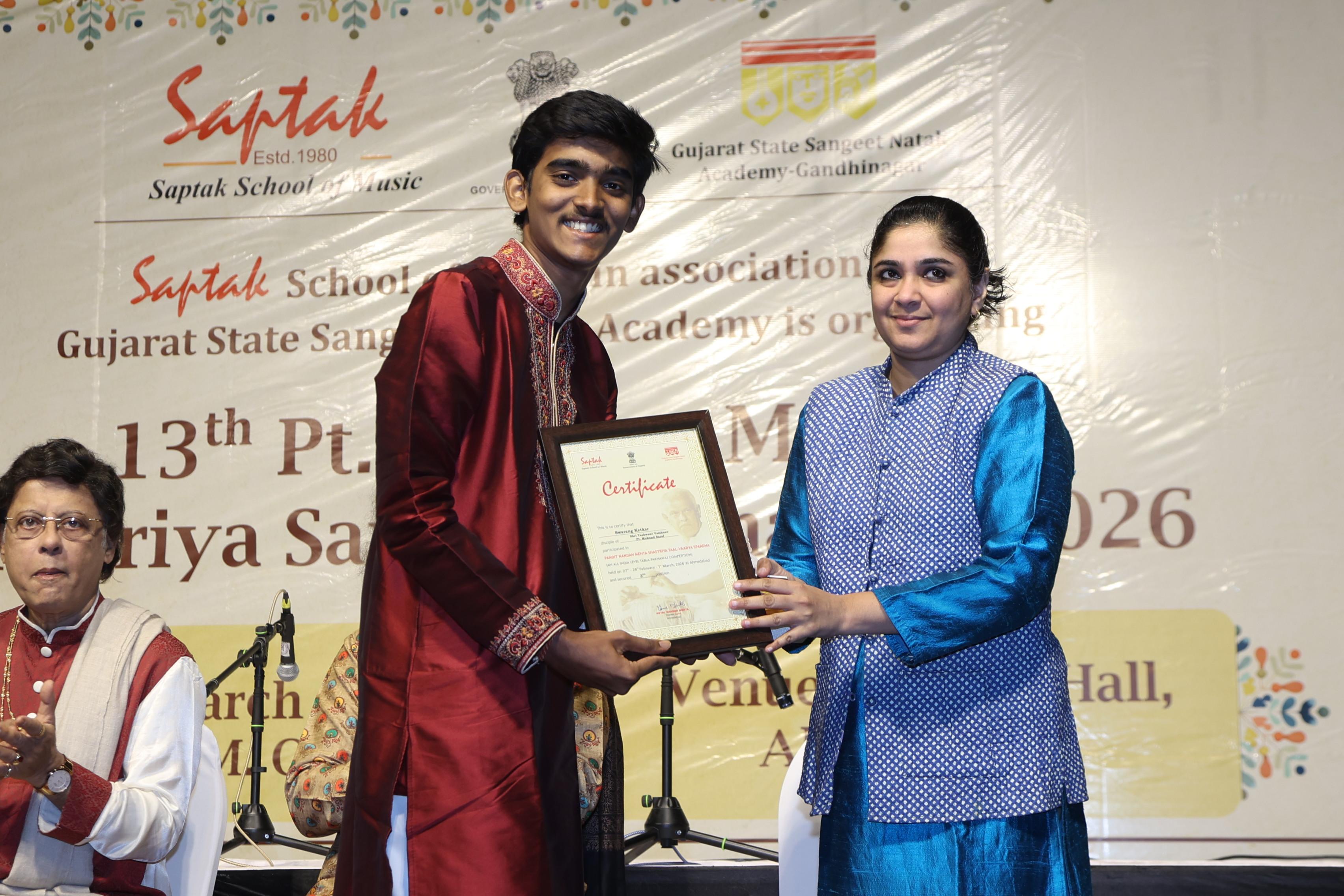 The first-prize winner of this competition earns a coveted solo performance at Saptak’s prestigious Annual Music Festival in January, while other promising young participants would get an opportunity to perform at various Saptak events throughout the year.