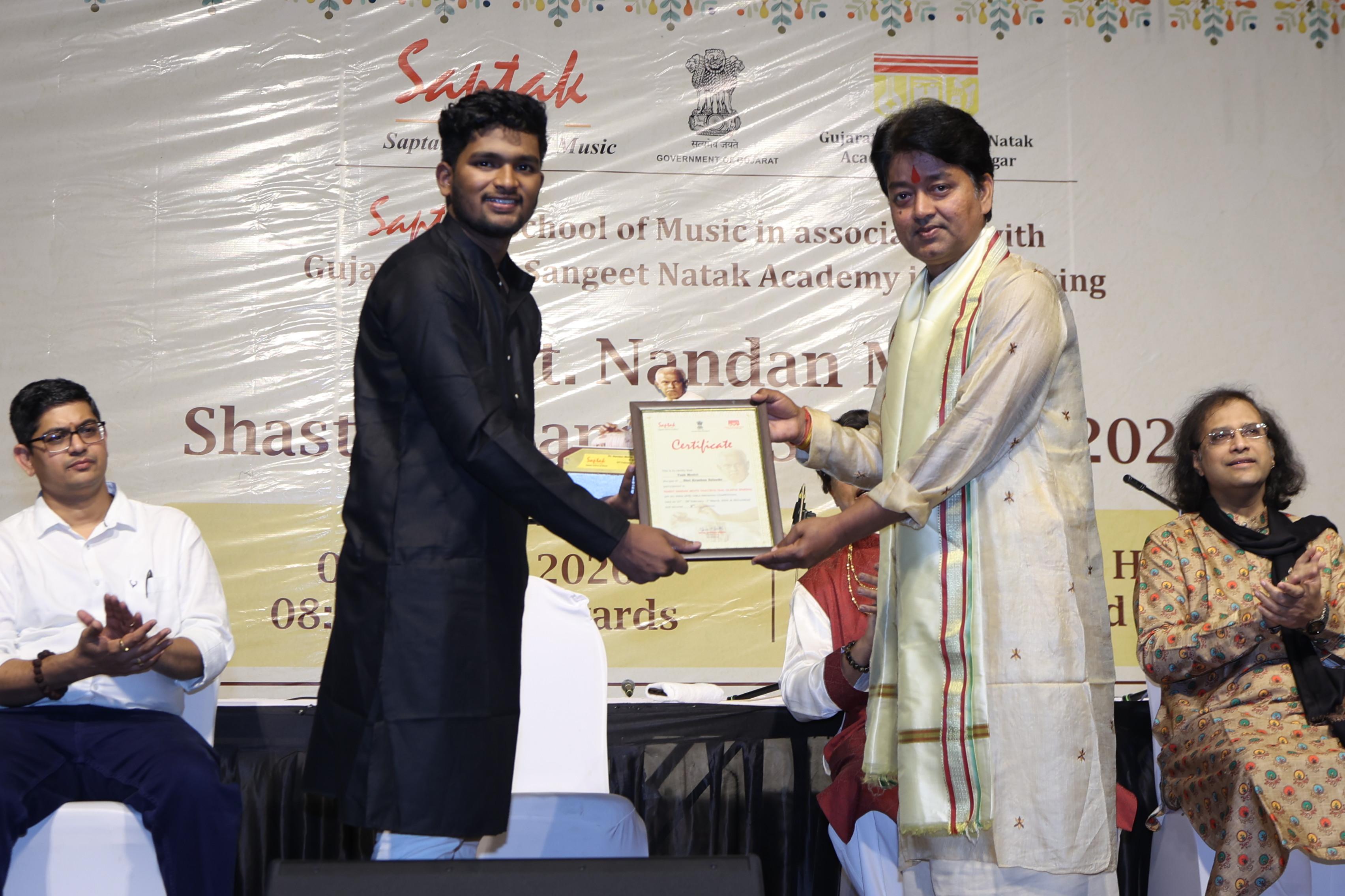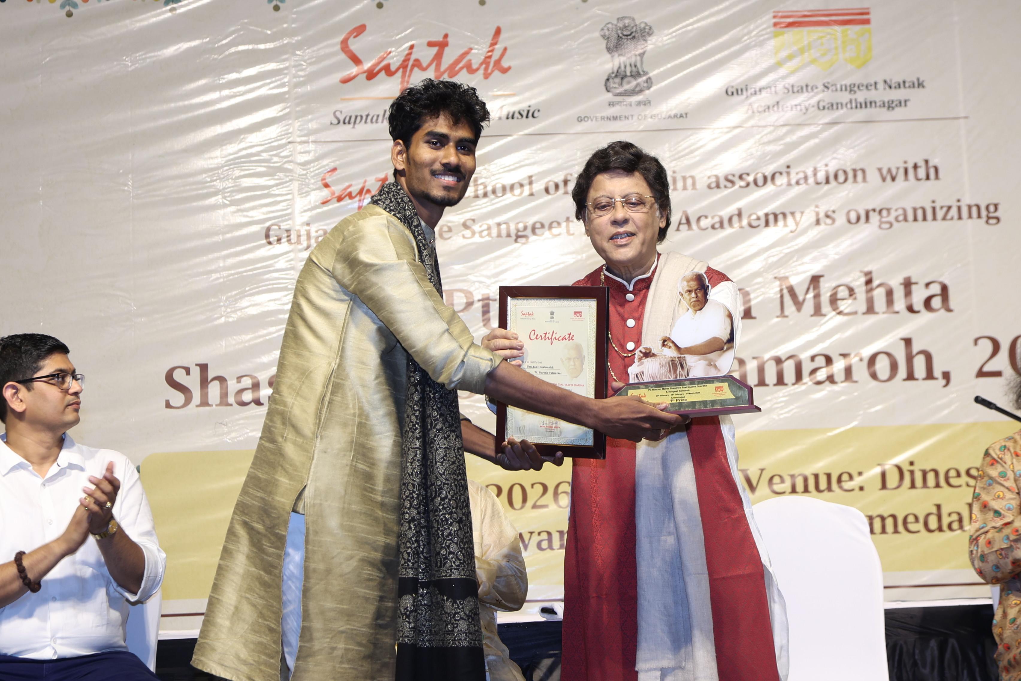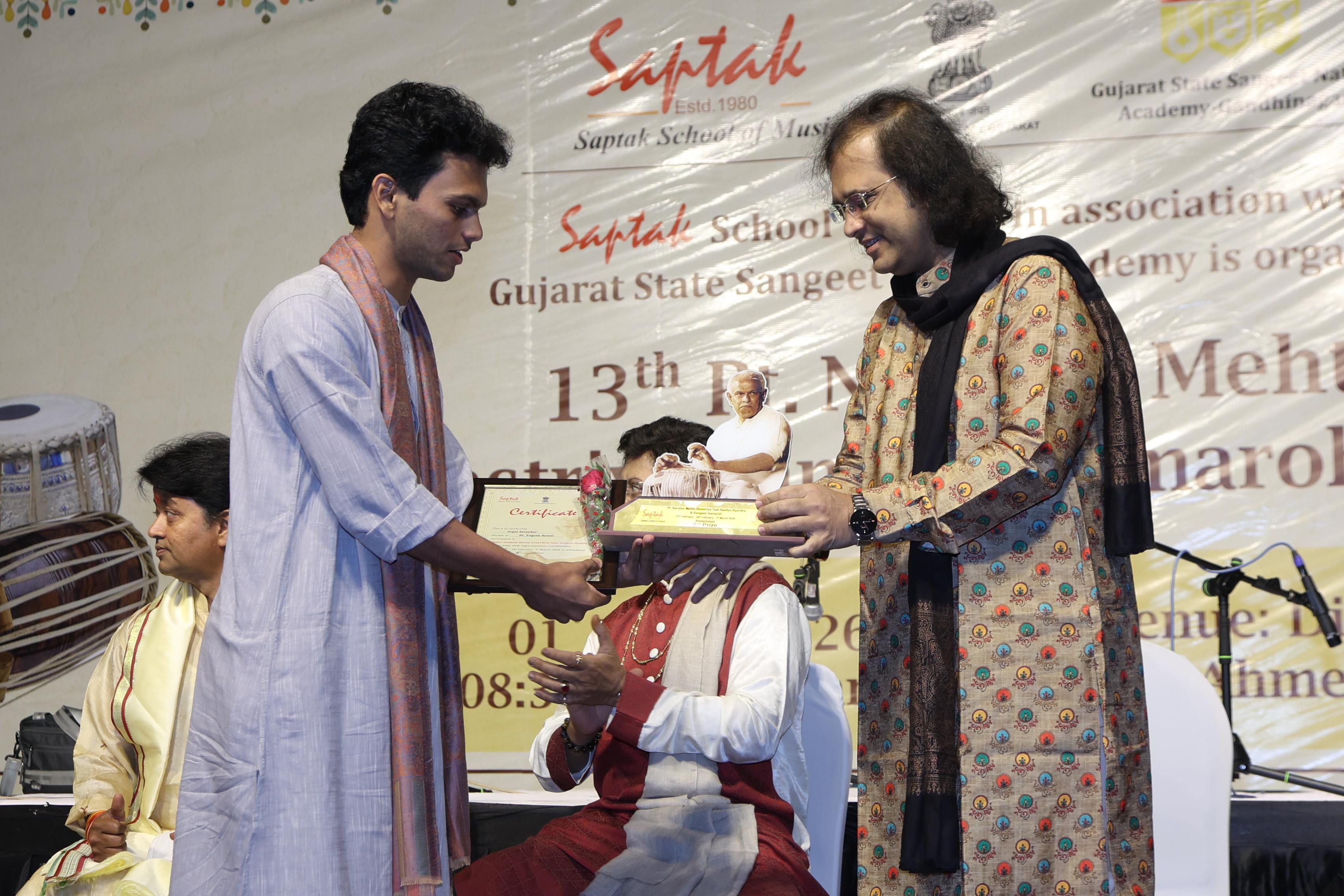 In celebration of his birth anniversary, Saptak organises the annual All-India Tabla-Pakhawaj Competition, "Pt. Nandan Mehta Taal-Vaadya Spardha", every year since 2012.